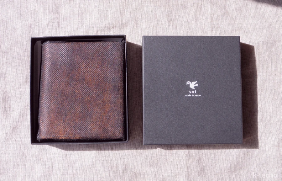 この梱包紙の模様って、sotの財布の裏地にも使われている模様と同じなんですよね。縁起のいい柄が財布の中にもそっと寄りそっていてくれる。私はsotのそういう細かな心遣いが大好きです。