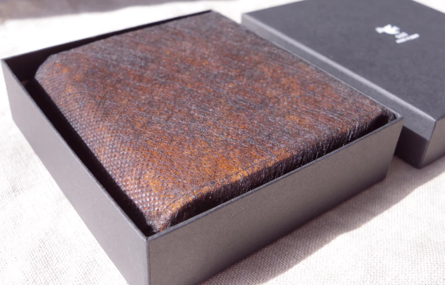 そしてヌーディーな布にくるまったプエブロレザー革財布がついに登場してくれました。